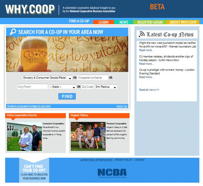 Why.coop, NCBA's new (beta) directory, is build on software developed by the Data Commons and build out by the cooperatives Ronin Tech Colective and Tribe Creative Agency.